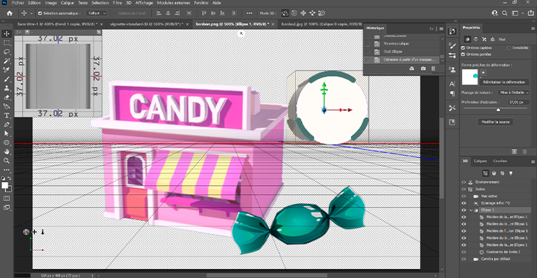 - un schéma en forme de bonbon devient le bonbon que l'on gagne et que l'on s'offre,